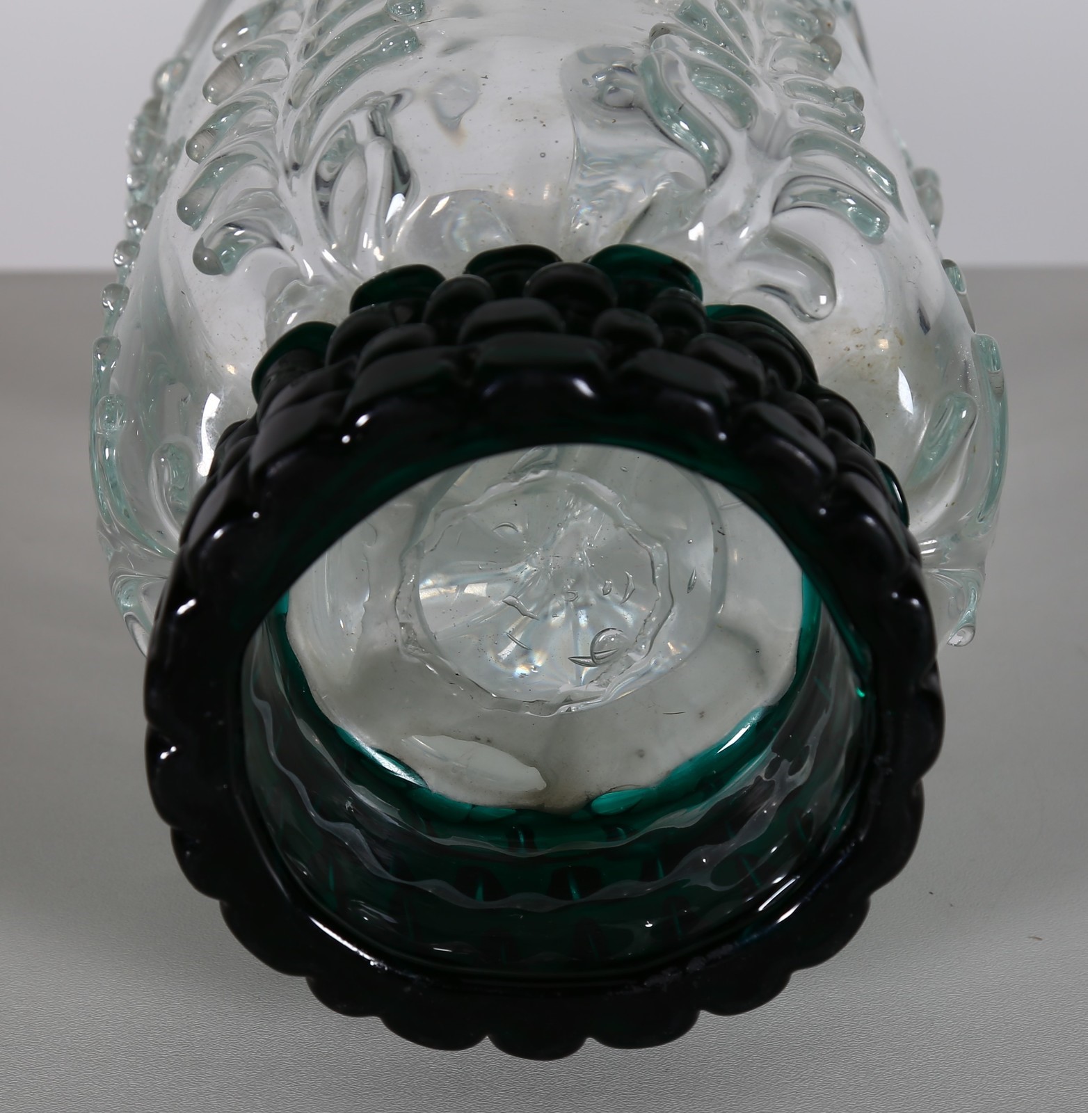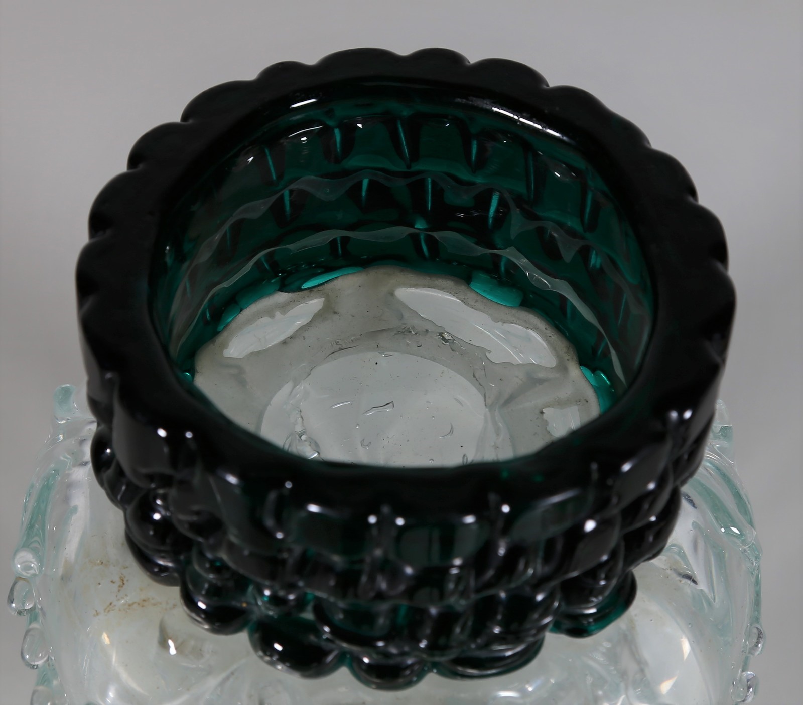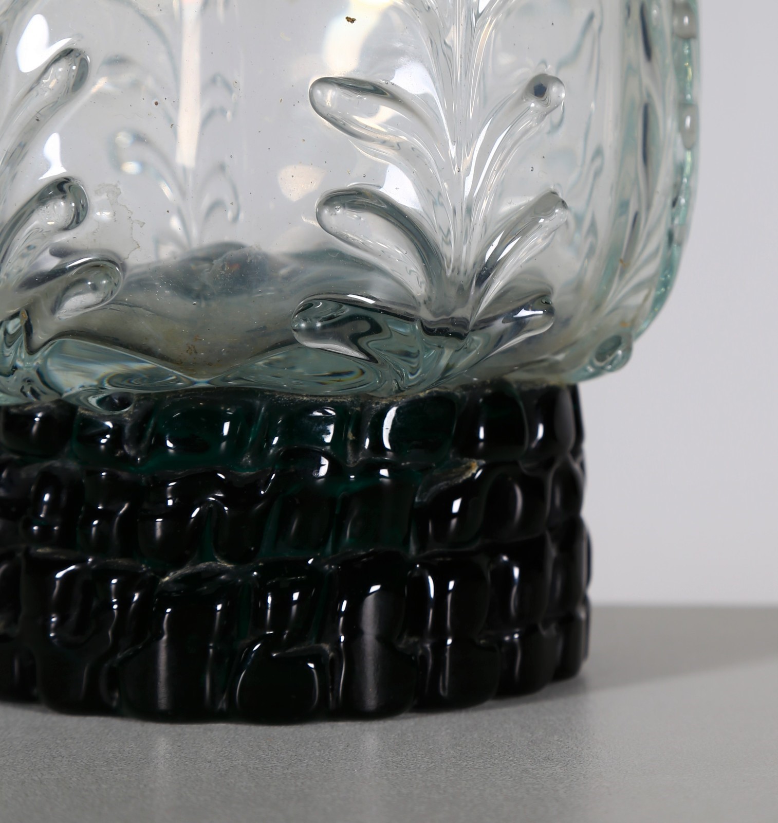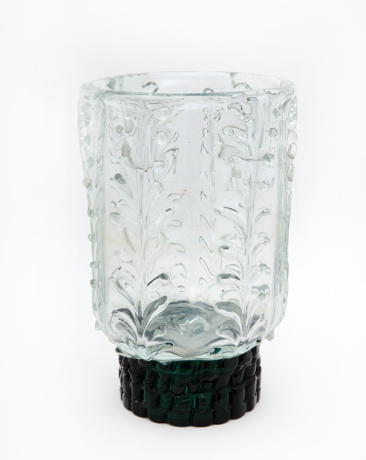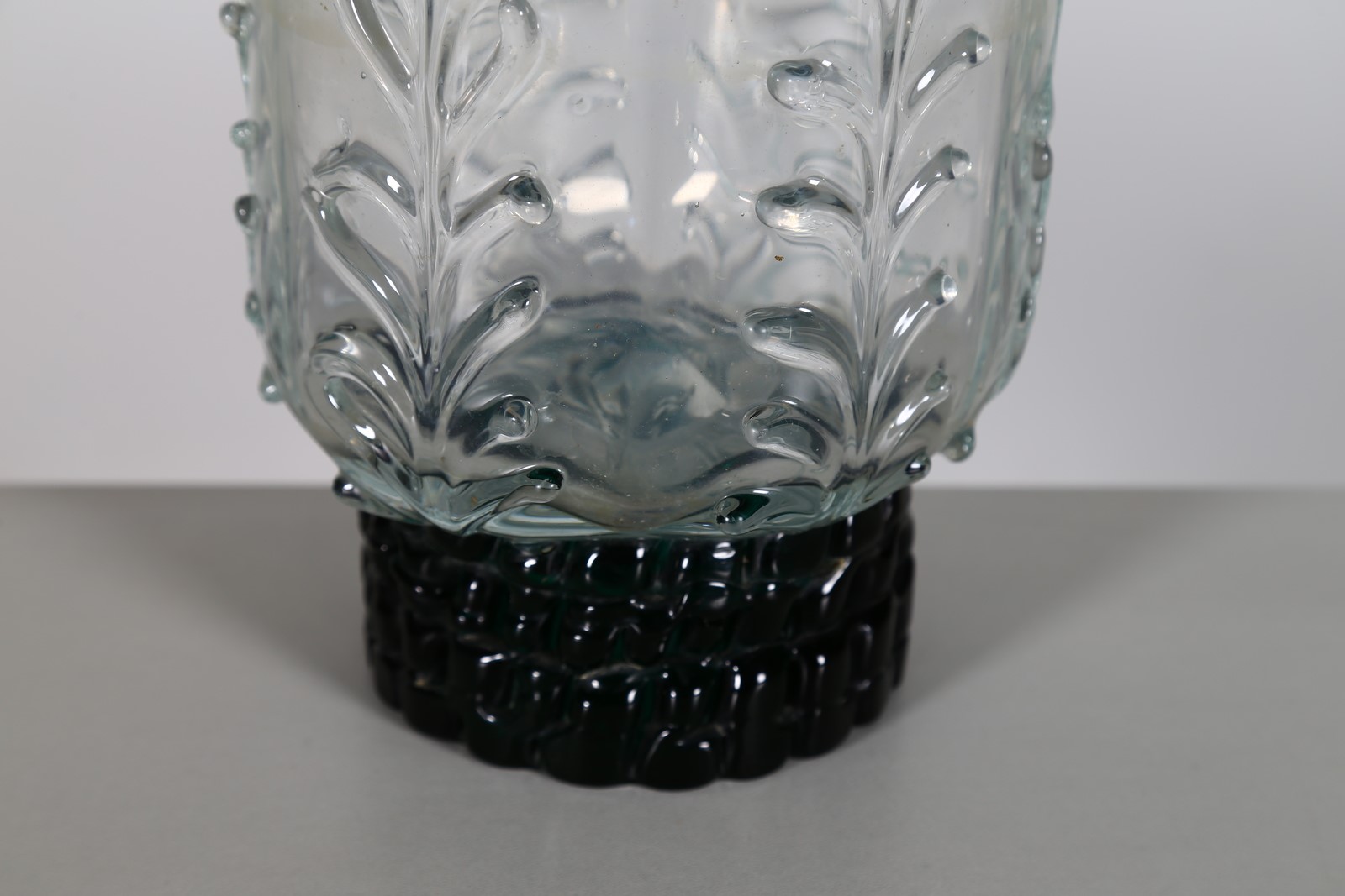 BUZZI TOMASO (1900 - 1981) Bowl. . Cm 17,50 x 26,50 x 17,50. Transparent embossed crystal with plant-style applications, base in green glass, mod. 3486 for Venini, 1933. Publications: Tomaso Buzzi alla Venini, by Marino Barovier, Ed. Skira, pg. 316.
