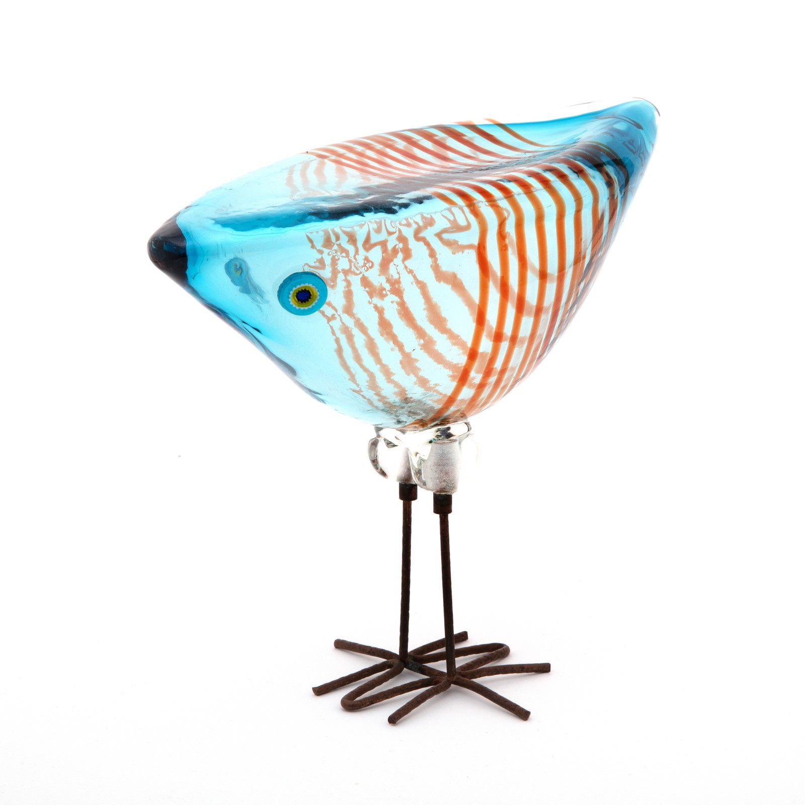PIANON ALESSANDRO Chick. . Cm 18,00 x 21,00 x 10,00. Light blue glass with red and brass rod applications, for Vistosi, 1960s. Publications: "Il Vetro Veneziano", published by Rosa Barovier Mentasti Ed. Arsenale, pg. 133.
