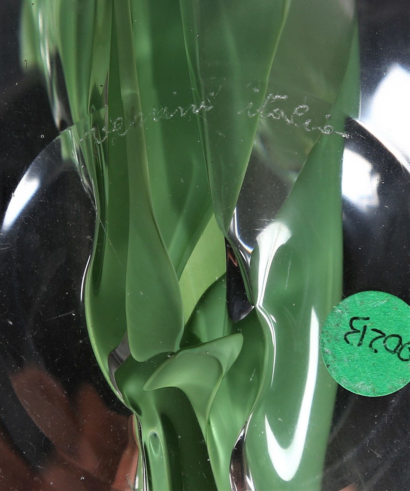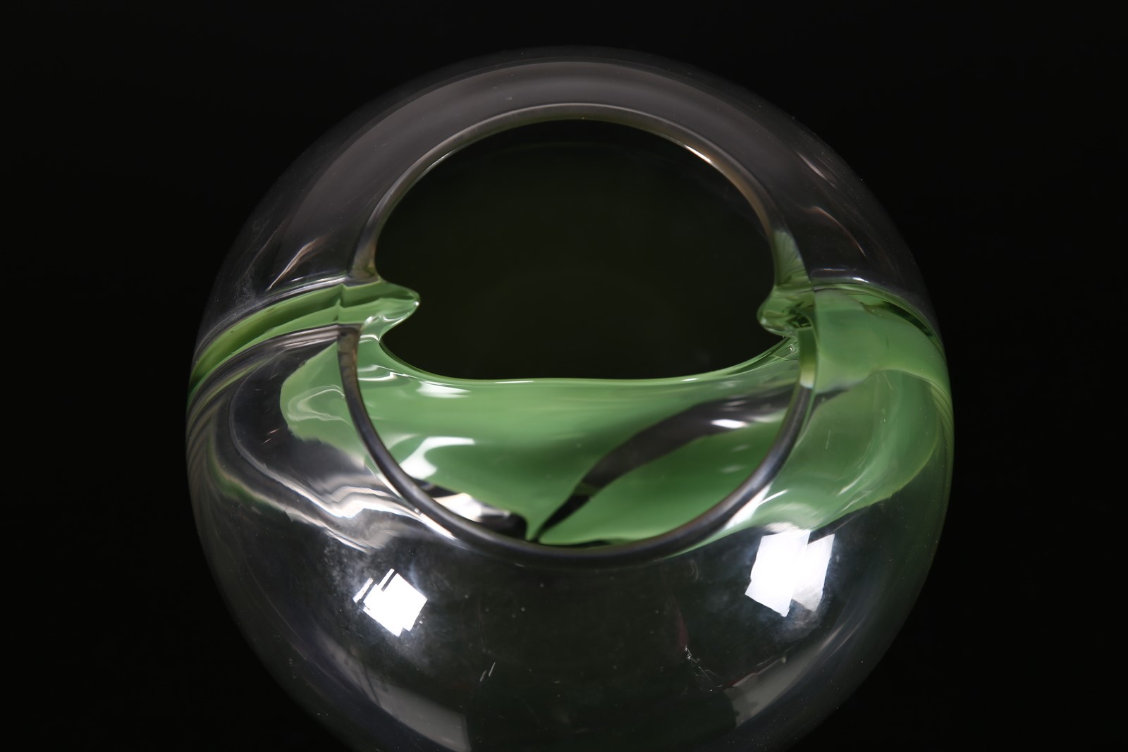 ZUCCHERI TONI (1937 - 2008) Vaso serie Membrana. -. Cm 22,00 x 18,00 x 22,00. Vetro soffiato con applicazioni interne color verde, per Venini 1969.