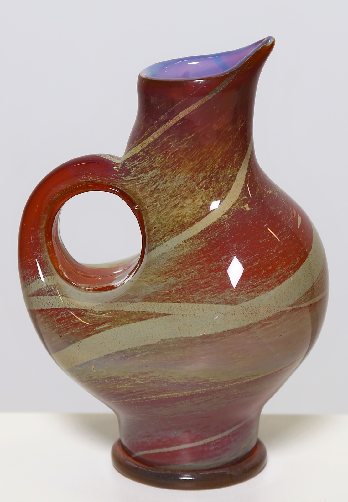 BAROVIER ERCOLE (1889 - 1974) Jug. . Cm 15,50 x 21,50 x 12,00. Glass jug from the "Ambrati" series, for Barovier and Toso 1956. Publications: Murano Glass Arnoldsche by Mark Heiremans pg. 132, with same form 1956; Ercole Barovier 1889-1974 ed. Marsilio pg. 100 for technique; Themes and Variations: 1919-1970 Marc Heiremans pg. 142 for technique; "L’arte dei Barovier", edited by Marina Barovier, Arsenale Editrice.