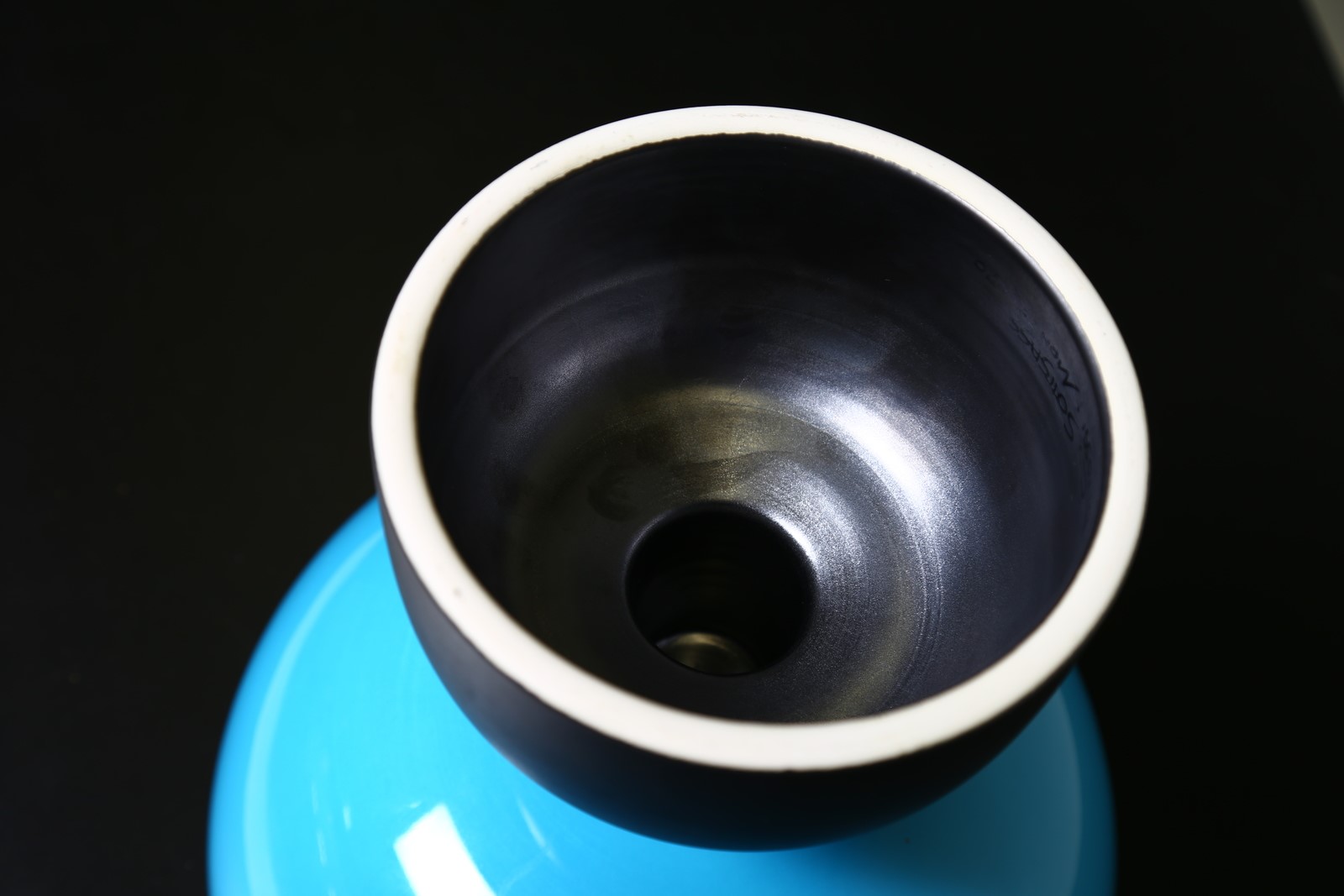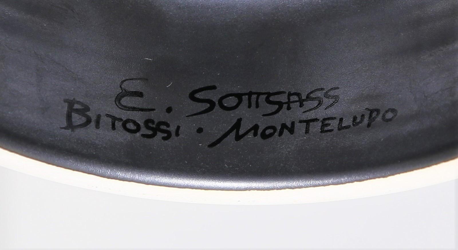 SOTTSASS ETTORE (1917 - 2007) Coppa. -. Cm 25,00 x 24,00 x 25,00. Ceramica policroma, per Bitossi Montelupo anni 60. Firma e timbro della manifattura alla base.