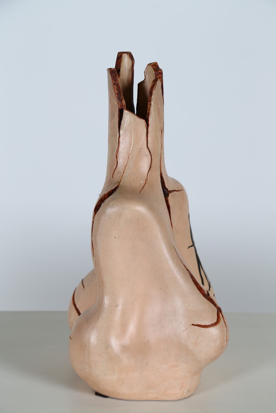 ASSETTO FRANCO Vaso scultura. . Cm 23,00 x 46,00 x 23,00. Ceramica intagliata...