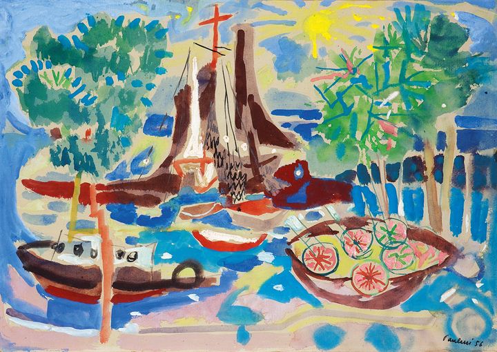 Lotto 354 | PAULUCCI ENRICO Genova 1901 - 1999 Torino "Paesaggio" 1956 40x60 tempera su...
