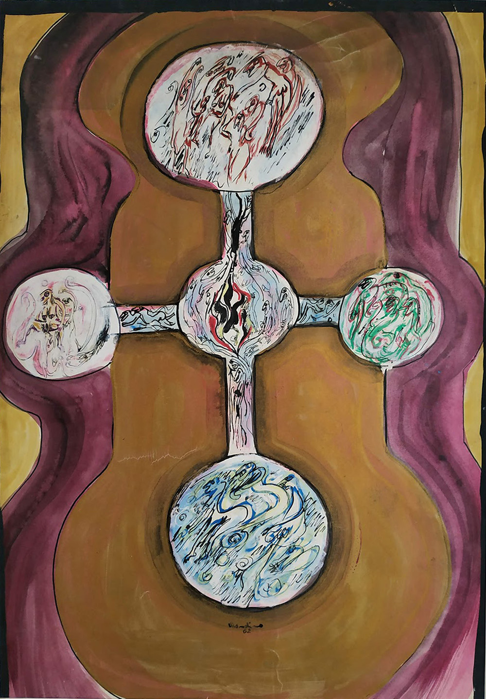 Aldo Mondino, Senza Titolo, 1962 Tecnica mista su carta 47x33 cm Firma e data in basso al centro Certificato d'autenticità su foto da parte dell'artista