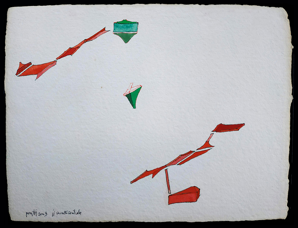 Achille Perilli, Il punto centrale, 2003 Tecnica mista su carta 25x33 cm...