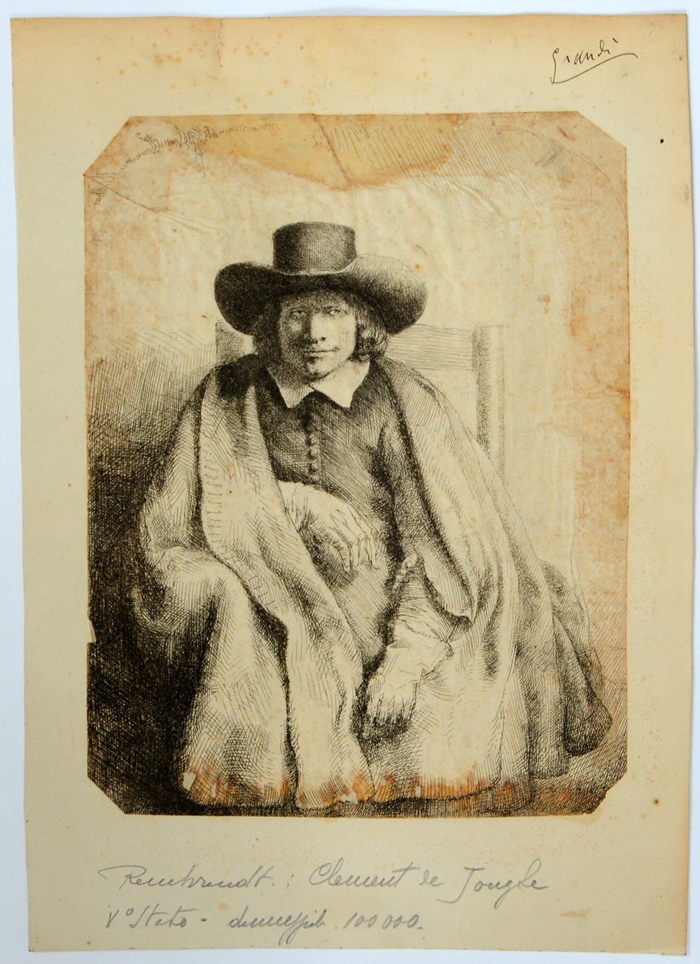 "Ritratto di Clement de Jonghe" acquaforte originale applicata su un supporto in cartoncino (mm 200x148) (difetti)
