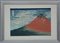 Xilografia a colori raffigurante monte Fuji con calligrafia, in cornice (difetti)