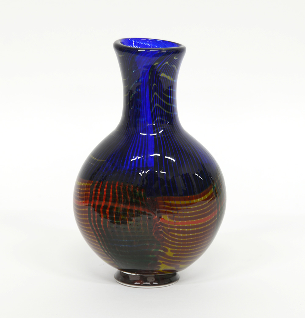 Manifattura di Murano.Vaso in vetro soffiato a fasce policrome sovrapposte...