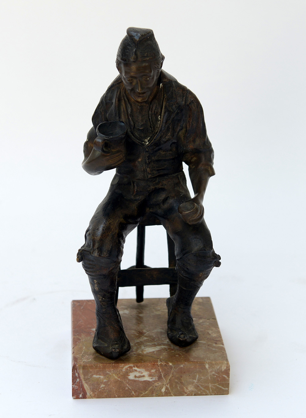 Ignoto, scultura in bronzo raffigurante personaggo maschile seduto, con basamento in marmo (h tot cm 30)