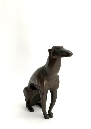 Scultura in bronzo raffigurante levriero seduto (h cm 26) (difetti)