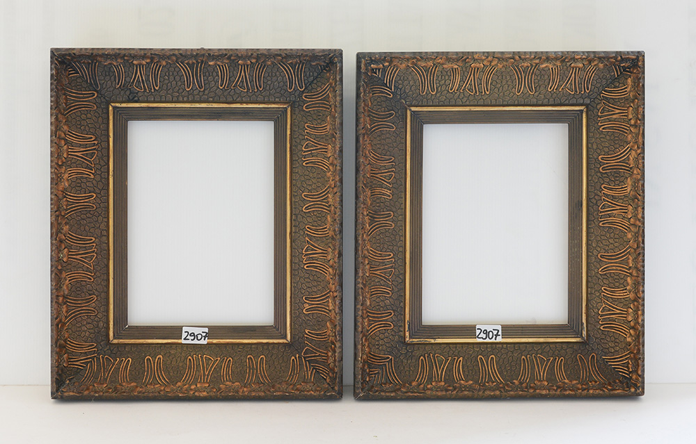 Coppia di cornici "liberty" in legno intagliato a motivi floreali (cm 23x18)(lievi difetti)