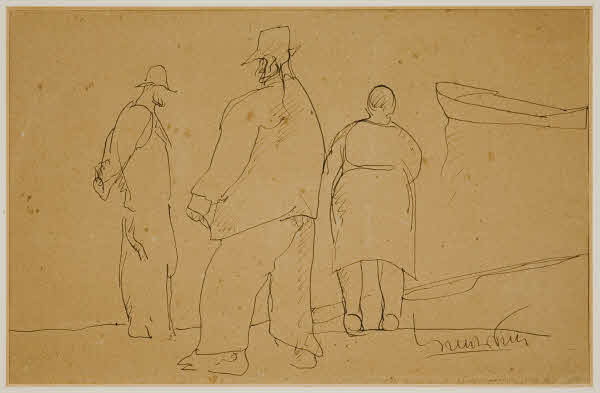 Lorenzo Viani - Tre figure sul molo - 1927/1930 c.a. inchiostro su carta cm. 25x37. Autentica a cura di Enrico Dei Firma in basso a dx