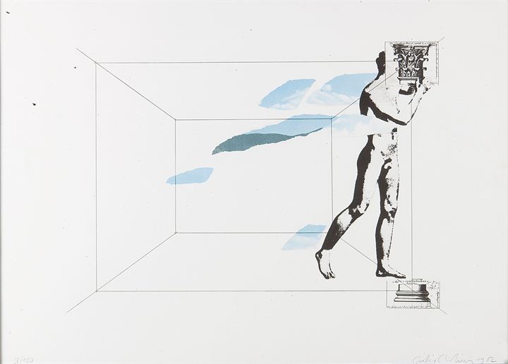 PAOLINI GIULIO Genova 1940 "Cariatide" 1982 50x70 litografia a colori, es....