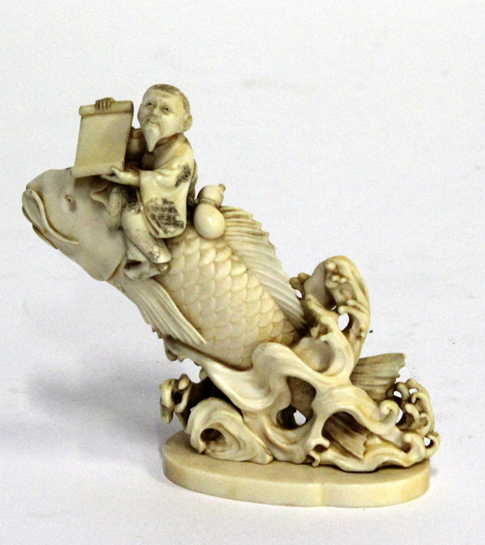 Saggio su carpa in avorio (h. cm 10,5)Giappone, inizio sec. XX