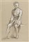 Artista del secolo XIX "Figura virile seduta" carboncino rialzato a biacca su...