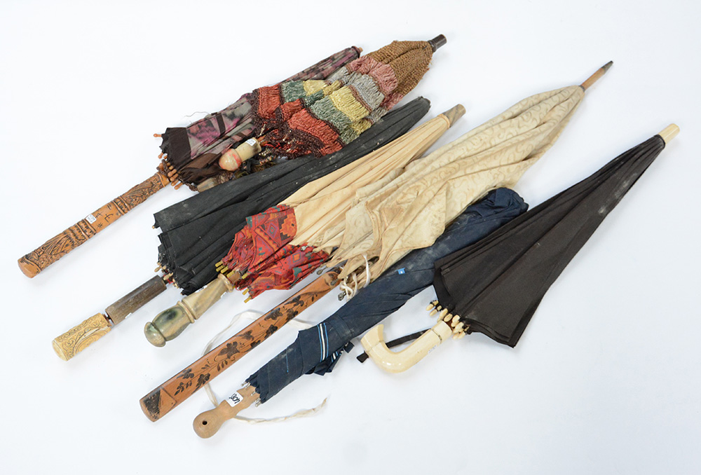 Lotto composto da sette ombrelli da donna di misure e materiali differenti (difetti e mancanze)