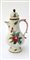 Manifattura di Faenza, secolo XVIII. Caffettiera in maiolica di forma costolata decorata in policromia a mazzi di fiori, profilata in bruno e prugna (h. cm 29,5) (rotture e restauri)