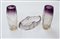 Manifattura cecoslovacca, Moiser. Trittico in vetro molato a fiori composto da due vasi ed una vaschetta con bordi violacei (difetti)
