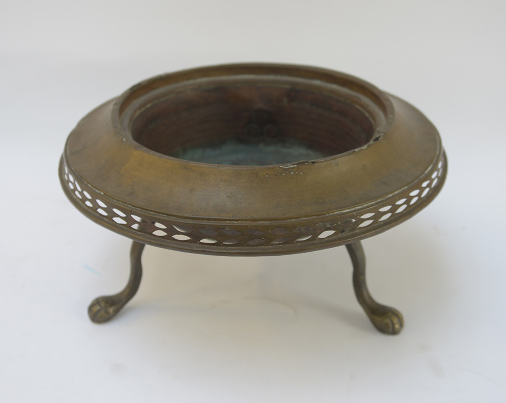 Bracere tripode in rame con piedi ferini (d cm 50) (difetti)