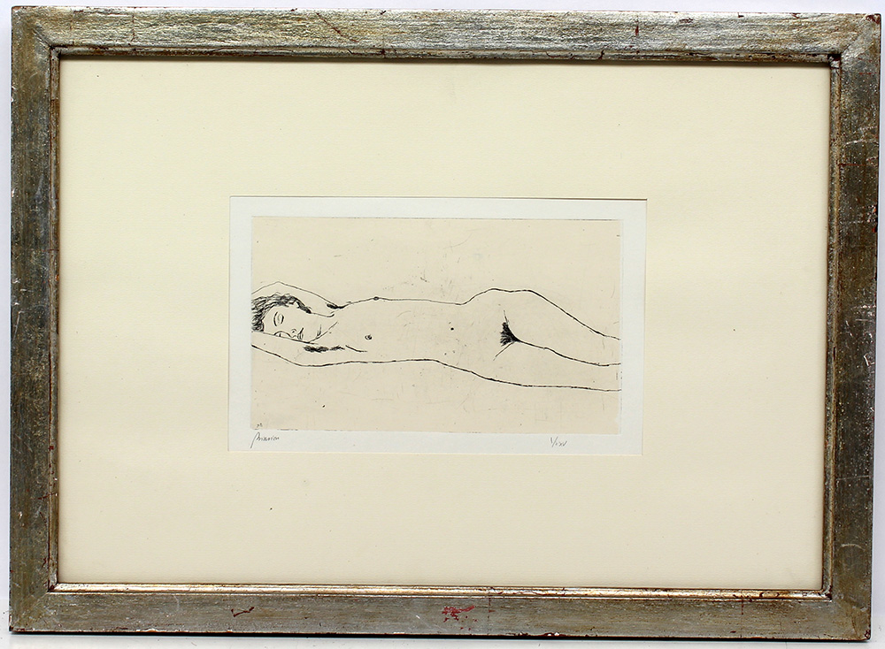 "Nudo" acquaforte (lastra cm 13,5x23,5) firmata e numerata I/XXV in basso a matita, siglata in lastra in basso a sinistra. In cornice