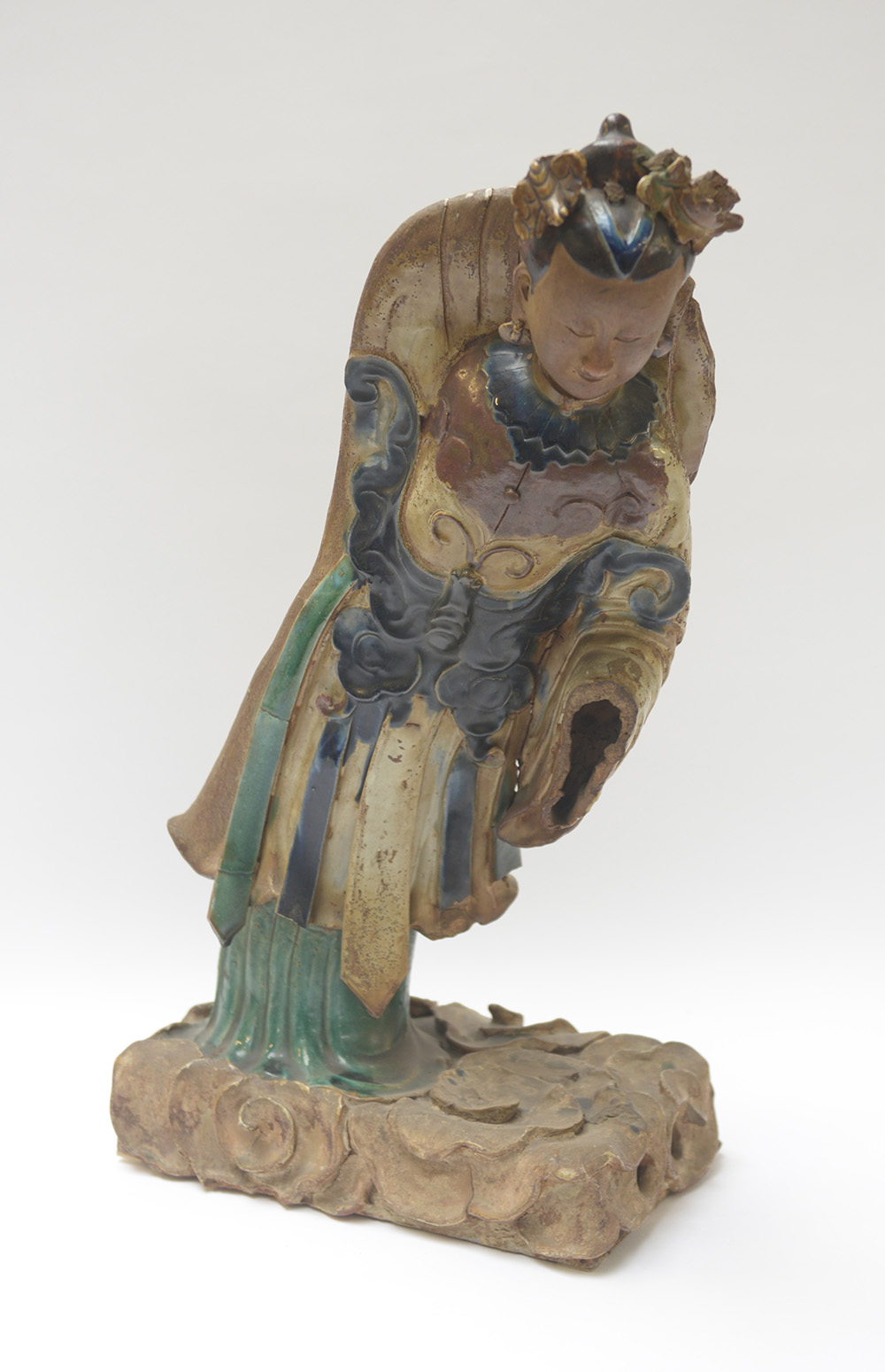Scultura in ceramica raffigurante Guanyin in stile Fa-Hua (difetti e mancanze)