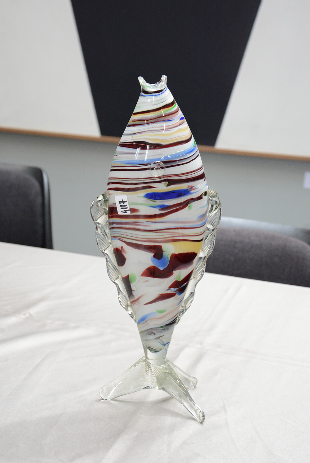 Lotto 1031 | "Pesce" scultura in vetro incamiciato incolore a macchie policrome. Epoca...