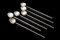 Gruppo di sei cannucce da cocktail in metallo argentato decorato a foglie...