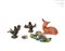 Lotto composto da due sculture in terracotta smaltata raffigurante galli di Matilde Magnaghi, una terracotta raffigurante un cerbiatto e due fiori