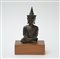 Buddha in bronzo in posizione seduta, base in legno (difetti e...
