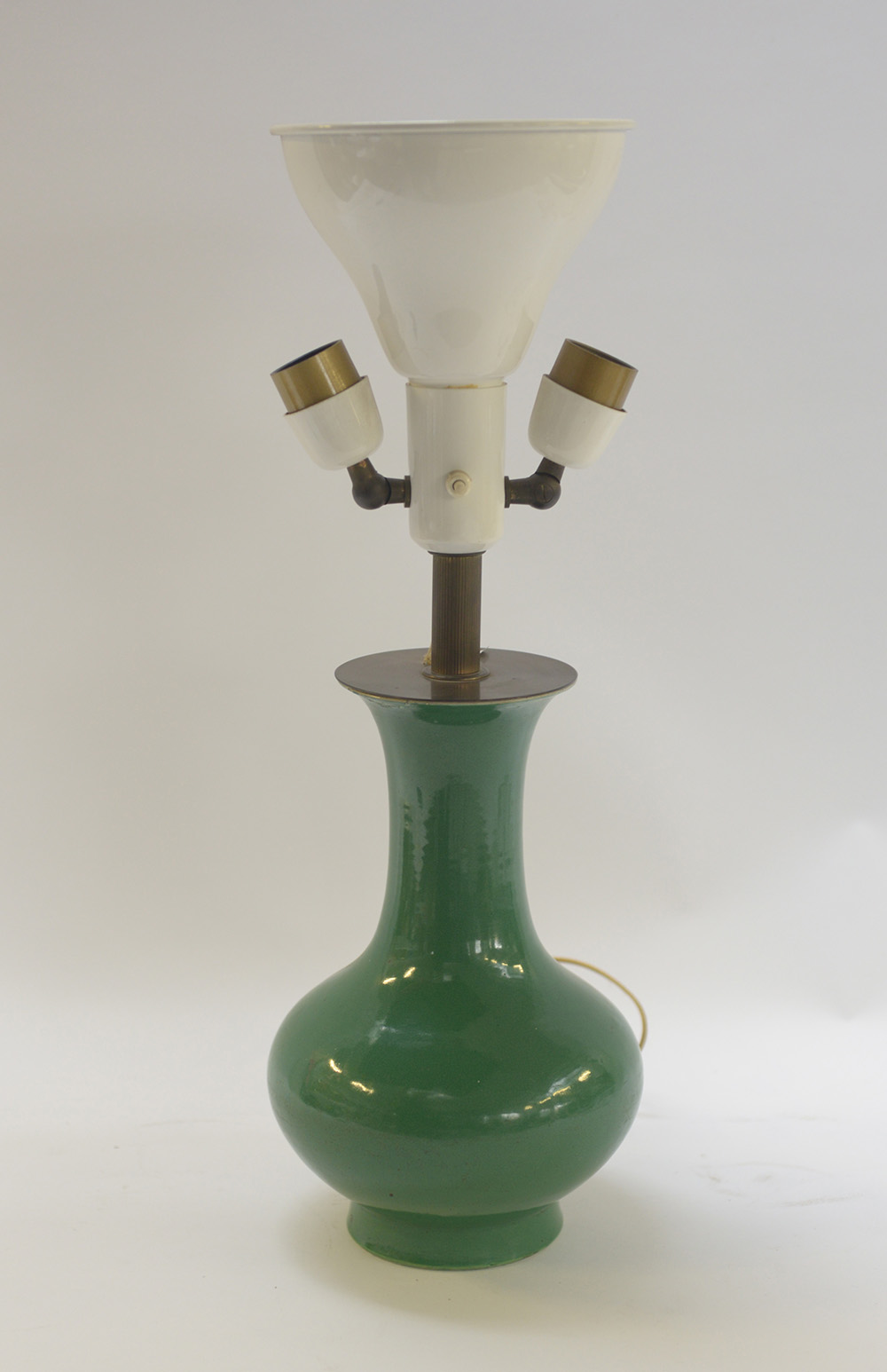 Vaso in porcellana ad invetriatura verde montato a lampada (lievi difetti)