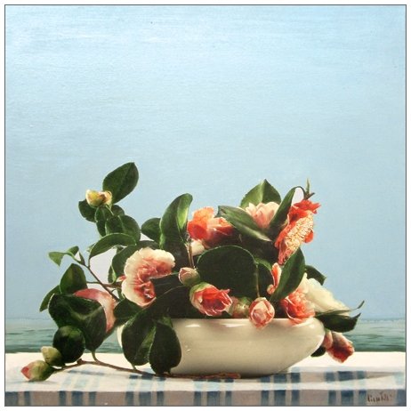 BENIAMINO CICCOTELLI Tollo negli Abruzzi 1937 Fiori e mare 2007 Olio su tela 60 x 60. Firma in b. a s.; sul verso firma, data e titolo. Autentica dell’autore su foto.