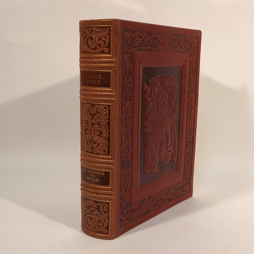 HUGO, Victor - Rino FERRARI - La Légende des Siècles. Monte Carlo: Arts et Couleurs, 1965. Esemplare n. 1151 in tre volumi, illustrato (difetti). Piena pelle lavorata a rilievo, entro custodia in cartone marmorizzato rosso (difetti). [3 voll.]
