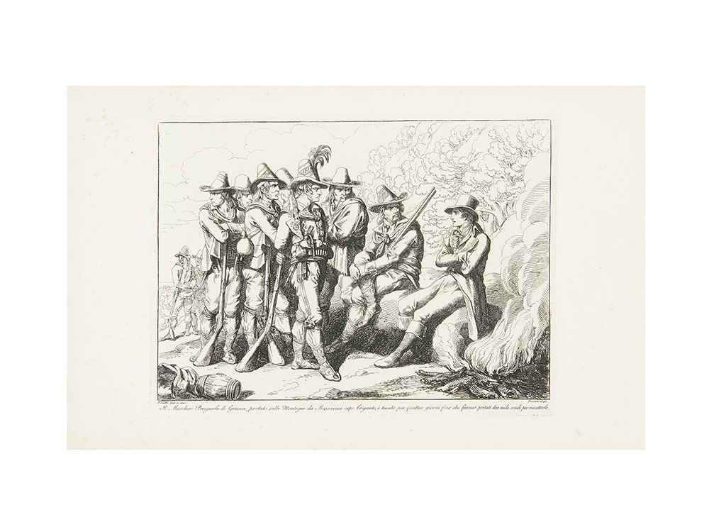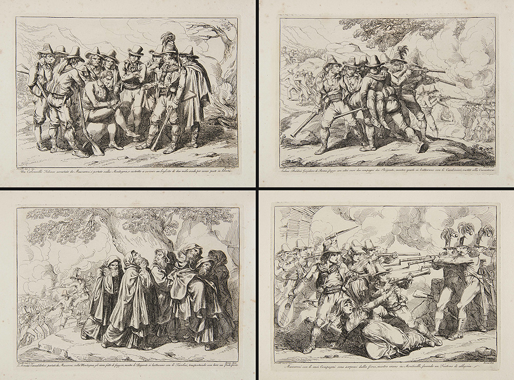 Collection of 10 engravings representing episodes of the life of the Italian bandit Massaroni.