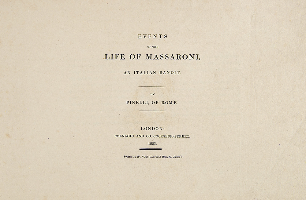 PINELLI, Bartolomeo (1771-1835) - Events of the Life of Massaroni, an Italian Bandit. London: Colnaghi and Co. Cockspur-Street, 1823.
