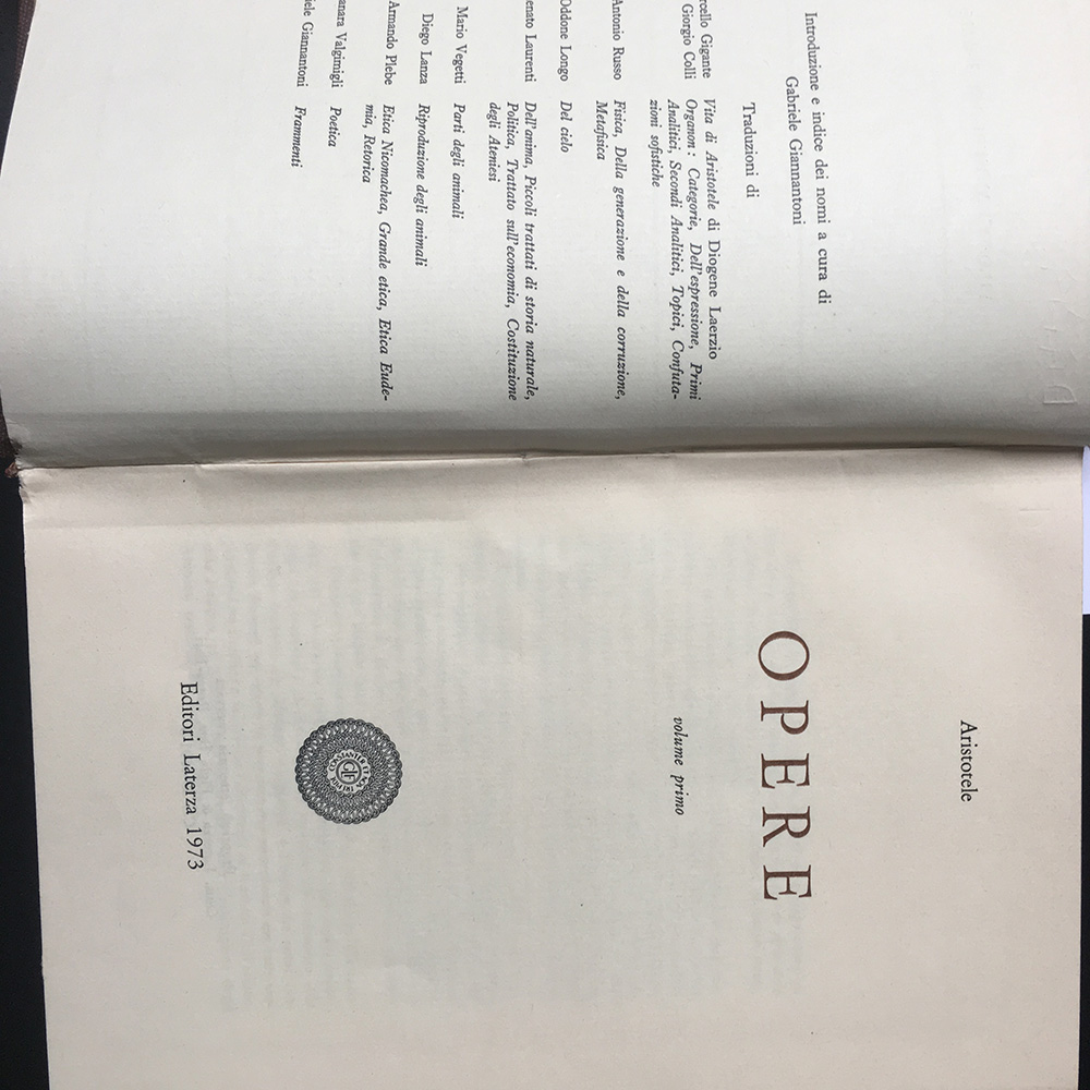 ARISTOTELE - Opere. voll. I-IV. Roma: Laterza, 1973 (difetti).