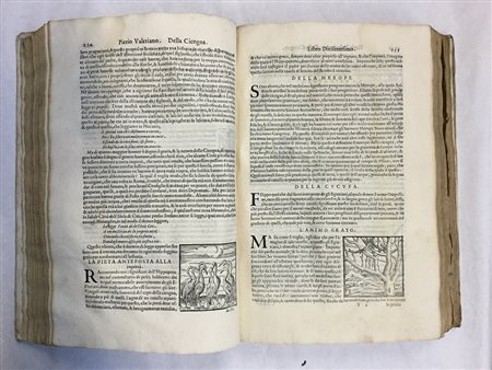 PIERIO, Giovanni. Ieroglifici overo Commentari delle occulte significationi degli Egittij. Venezia: Giovanni Antonio e Giacomo de' Franceschi, 1602 (prima edizione italiana). Vol. in folio con marca tipografica al frontespizio, numerose vignette xilografiche (mancano 5 pagine alla fine; gore e bruniture). Legatura cartonata (difetti).