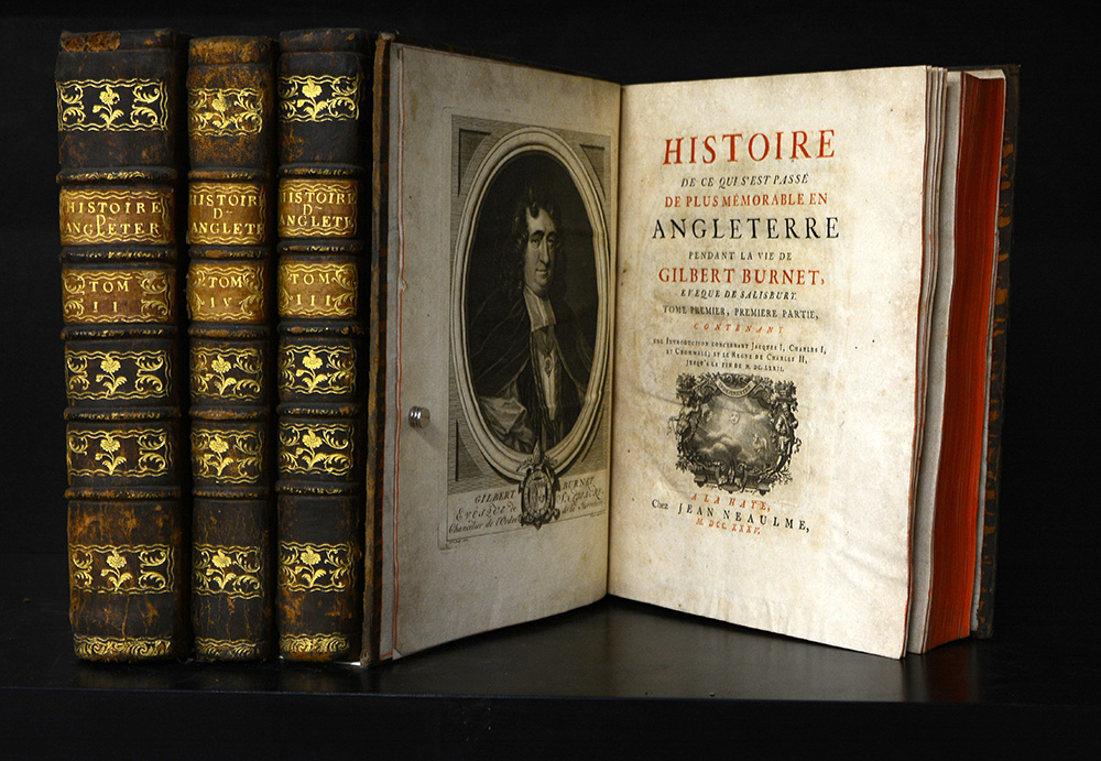 BURNET Gilbert, Histoire de ce qui s'est passè de plus mèmorable en Angleterre . L'Aia, Jean Neaulme, 1735. 4 voll in 4to, Numerosi ritratti a piena pagina incisi in rame, leggere fioriture e bruniture. Piena pelle coeva, dorsi in oro e tagli rossi (difetti)