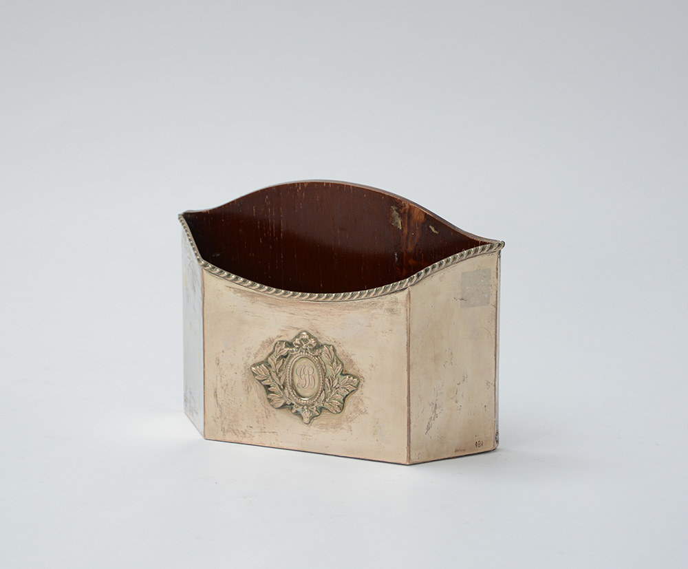 Porta corrispondenza in legno e argento con decoro vegetale in rilievo (cm 21x15,5) (difetti)