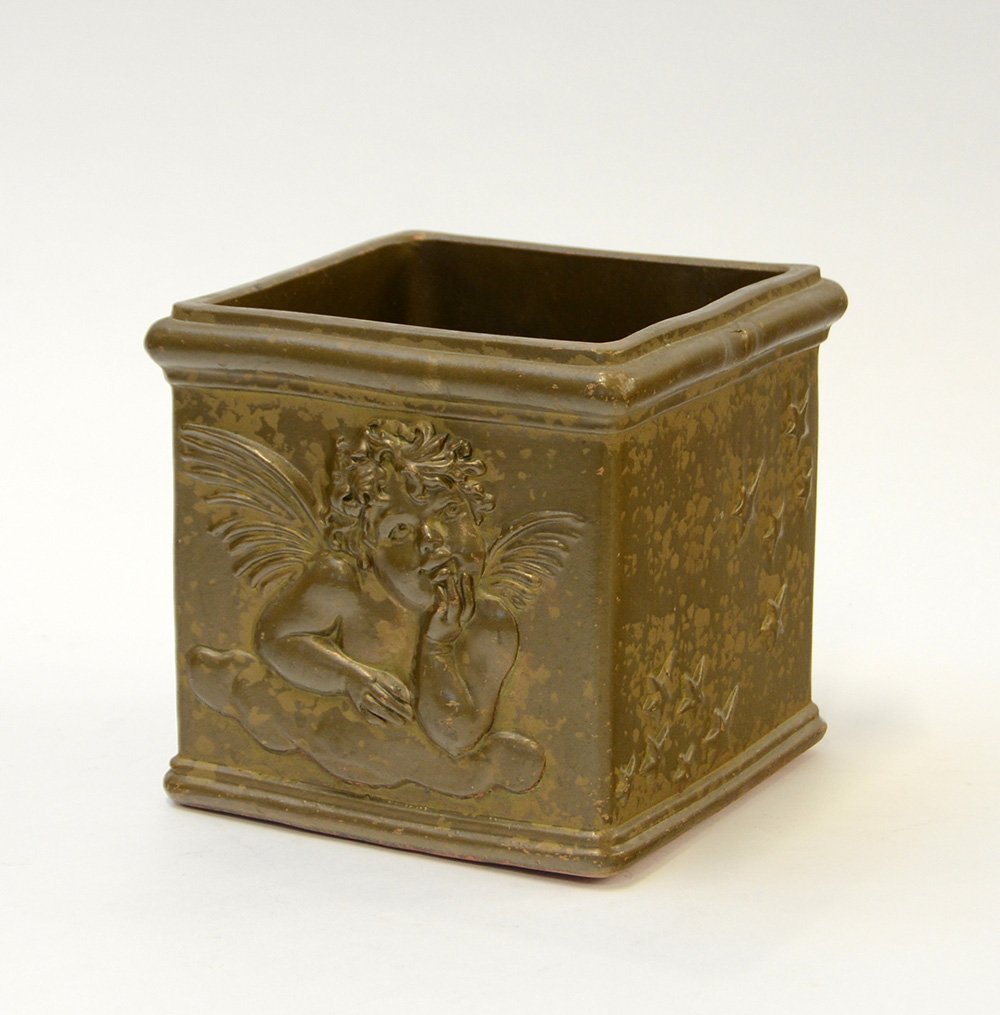 Lotto 1715 | Contenitore in terracotta con angioletti in rilievo (cm 19x16x19)
