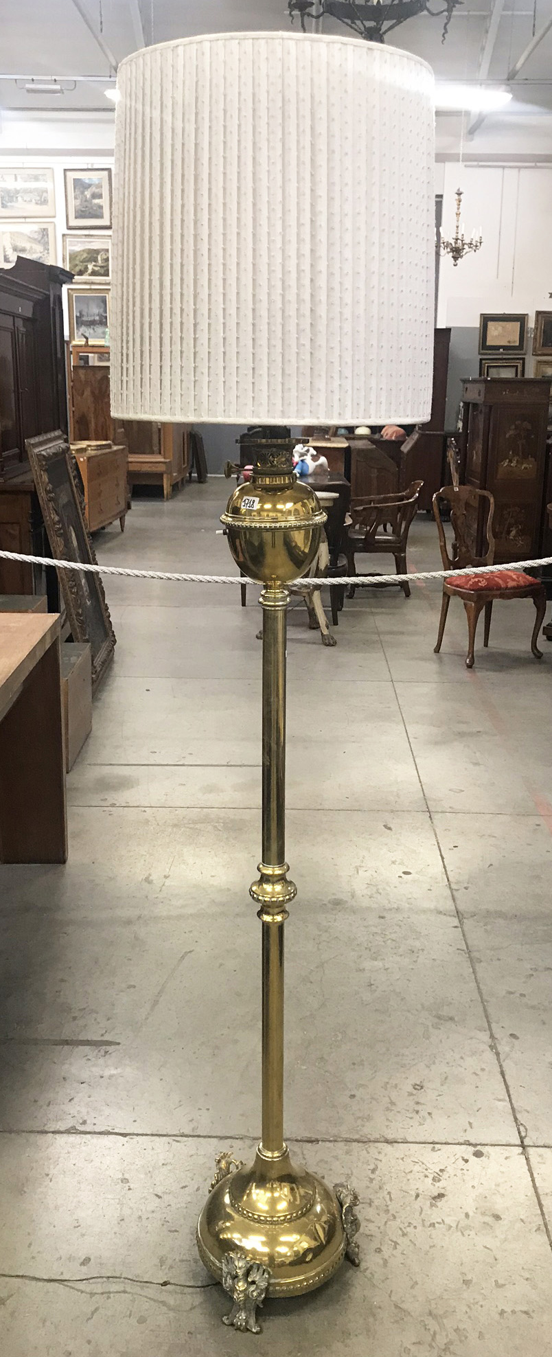 Lampada da terra a tre luci in metallo dorato completa di paralume (h cm 188) (difetti)