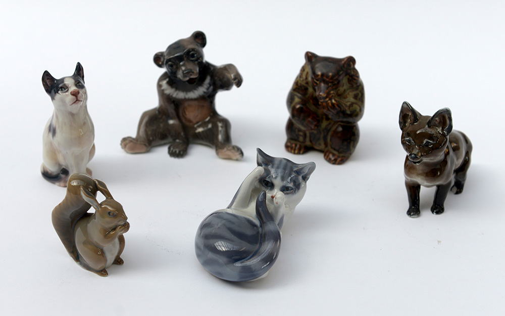 Manifatture diverse. Gruppo di sei animaletti in ceramica e porcellana...