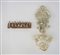 Lotto composto da una mensolina con specchio in porcellana decorata a dorature e fiori e alcune piccole figure da presepe montate su pannello in legno (difetti)