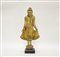 Scultura in legno laccato e dorato raffigurante Buddha stante con base...