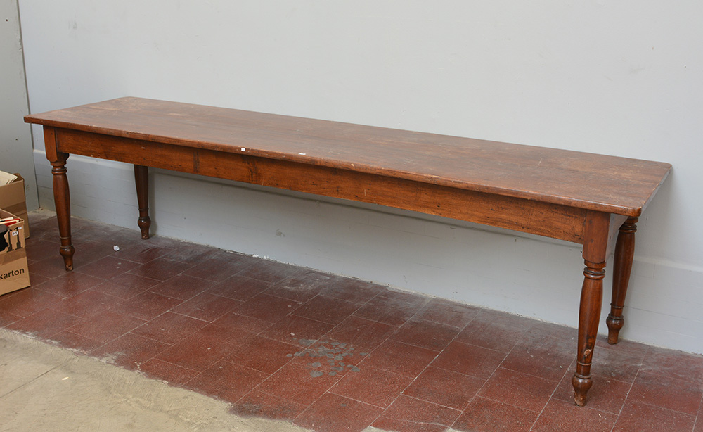 Tavolo da refettorio in noce a quattro gambe tornite, inizio sec. XIX (cm 293x80x72) (difetti)