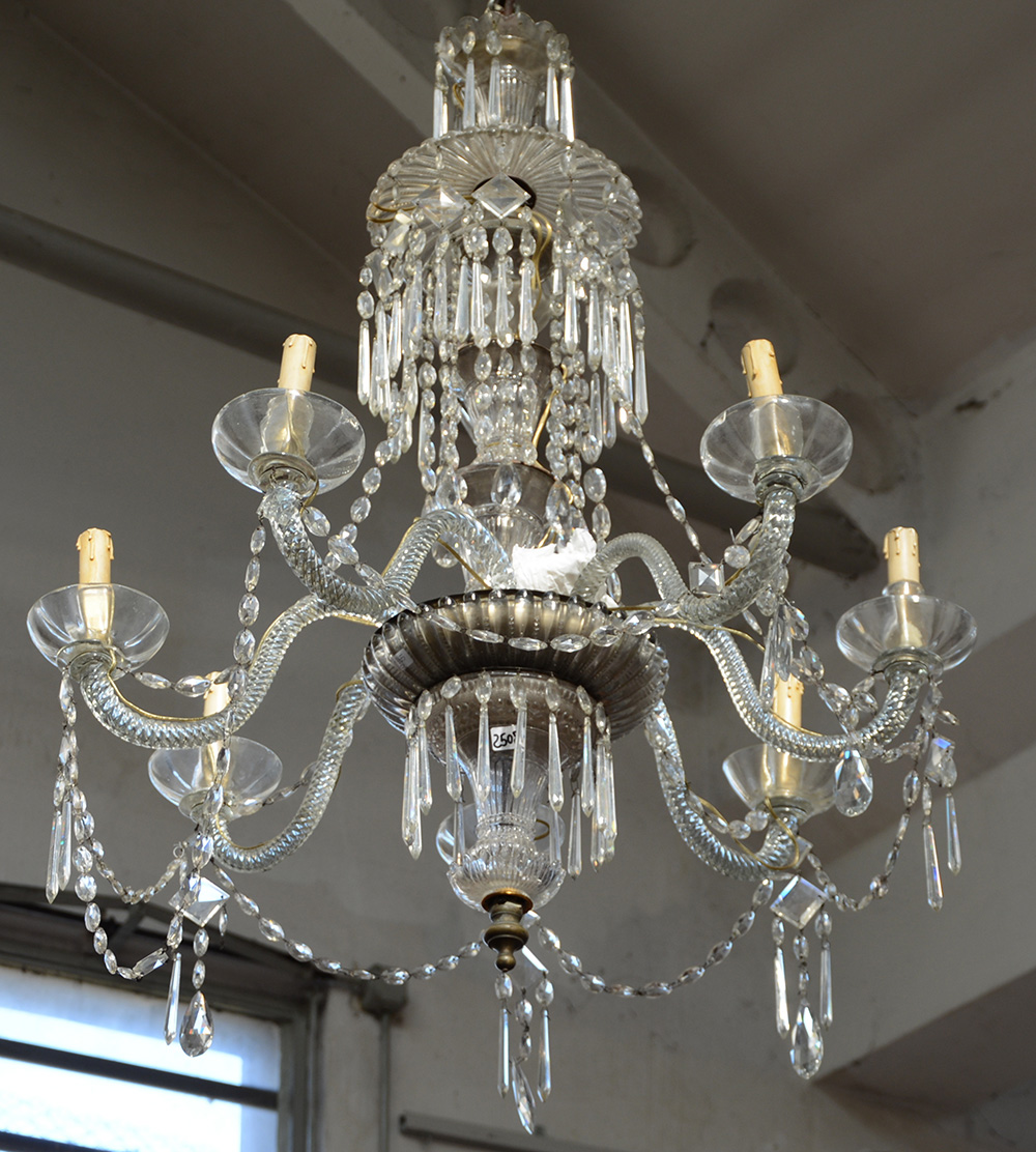 Manifattura di Boemia, lampadario a otto luci con braccia in critallo...