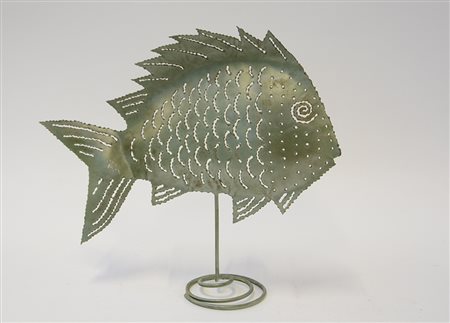 Candeliere in ferro dipinto verde con paralume a forma di pesce (h cm 38)...