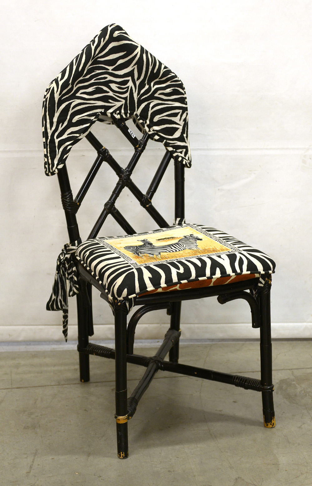 Sedia in bamboo "enanizzato" rivestita in tessuto a finta zebre (difetti)