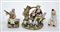 Manifatture diverse del secolo XX. Tre gruppi in ceramica policroma raffiguranti scene di vita (difetti)