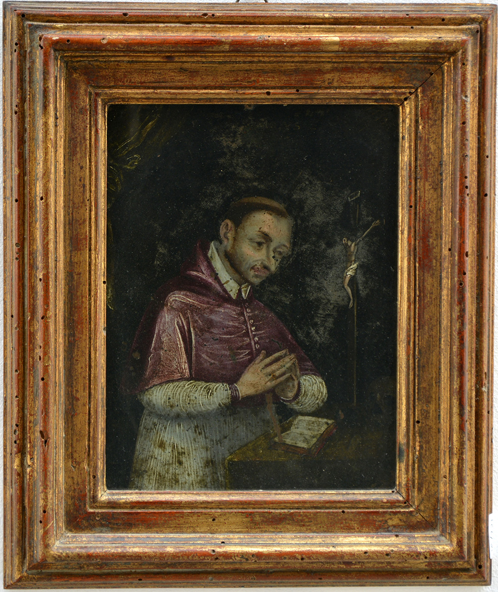 Scuola del secolo XVII "San Carlo" olio su rame (cm 19,5x15,5) (difetti)