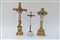 Lotto composto da tre crocifissi in biscuit, metallo dorato, legno e...